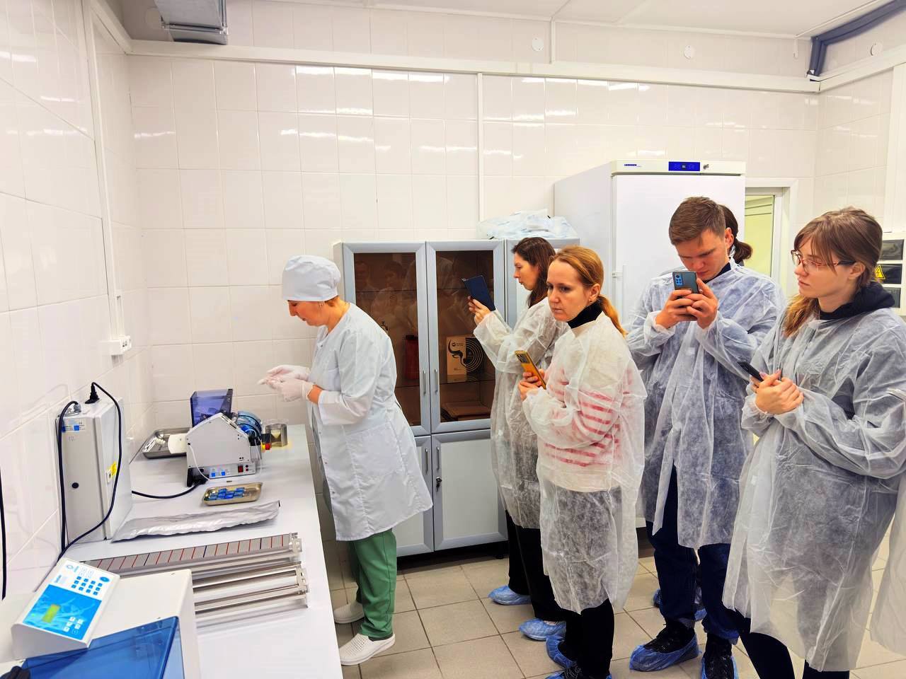 В фокусе визита находились ключевые производственные этапы. Гостям был наглядно представлен полный цикл работы со спермой – от её получения и первичного анализа до контроля качества. Особый интерес вызвало современное оборудование, в частности, система «АндроВижн» для автоматической оценки качества свежеполученного и криоконсервированного эякулята. Также была продемонстрирована европейская линия производства семени в пайетах (компания Minitube) и продемонстрирован процесс подготовки и заморозки материала для длительного хранения. Демонстрацию провела заведующая лабораторией-биотехнолог Алина Сергеевна Кокорева.